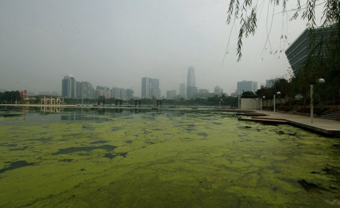 他認為,像中心廣場人工湖這樣露天的靜態(tài)水體,可以增加大功率的水質循環(huán)過濾系統(tǒng)。具體做法是,將湖水通過溝渠引入機房,途中濾掉水藻和各種漂浮物,在過濾系統(tǒng)借助藥劑、電子殺菌等方式去除水中的微生物、藻類細胞等,最后將凈水送回到湖中。“增加一套循環(huán)過濾設備大約需要一兩百萬元,除此之外別無他法,僅靠換水治標不治本。”劉窩進強調。