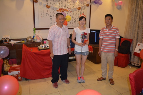 首先,主持人宣讀了此次生日會的壽星們,同事們?yōu)閴坌莻儙狭松彰薄=又?,我們的曹總和周總為每位壽星送上了公司的禮物:鮮花和現(xiàn)金紅包一個,我們就是那么任性的哦!