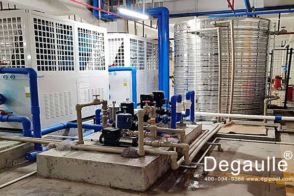 除了保證游泳池水質(zhì),游泳池的水溫也非常重要,在過低的水溫玩水、游泳,兒童容易患感冒、身體不適等問題。因此游泳池恒溫系統(tǒng)是非常有必要的,這個(gè)項(xiàng)目2臺25匹的空氣源熱泵用于維持游泳池的水處于恒溫中。另外1臺10匹的空氣源熱泵用于淋浴房。