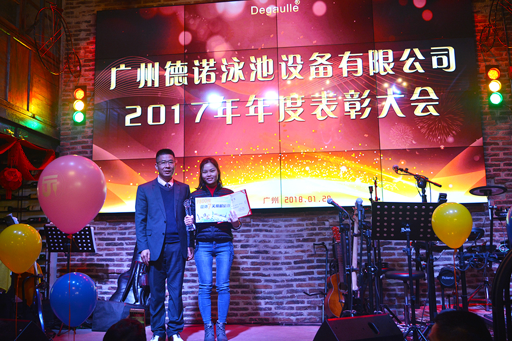 《最佳新人獎》泳池事業(yè)部阿泉,阿泉來到公司半年多,工作中積極謙虛,入職以來一直嚴(yán)格要求自己,在同事與領(lǐng)導(dǎo)的帶領(lǐng)下,專業(yè)知識不斷提高,在工作中獨當(dāng)一面。