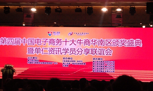 2013年3月31日,第四屆中國電子商務(wù)十大牛商華南區(qū)頒獎盛典暨單仁資訊學(xué)員分享聯(lián)誼會在美麗的中山喜來登酒店拉開帷幕,本次頒獎盛典由中國電子商務(wù)協(xié)會、廣東省電子商務(wù)協(xié)會和單仁資訊集團(tuán)聯(lián)合舉辦,單仁資訊集團(tuán)總裁劉宏、副總裁陳飛、副總裁張高峰及南方都市報、廣州新快報、佛山日報中山日報、東莞日報等媒體和各地電商行業(yè)協(xié)會領(lǐng)導(dǎo)出席,廣東地區(qū)400多位企業(yè)家慕名而來。