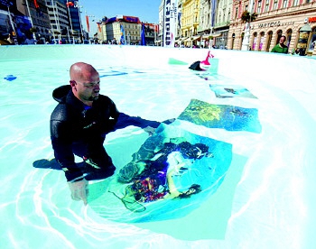 游泳池中的水下攝影展